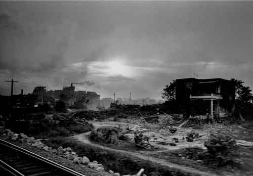 Smoke rising from the periphery. The rumble of tanks. Too many soldiers for this early morning hour, too many people for these broadcast warnings. Too many decisions to be made, steps to be taken, movements in directions from which there is no coming back. The first bullet makes a brand new hole in a history vermilion. Potholes, bullet holes, dark stains upon the paving stones. Months from now, all this will be replaced. Heads, arms, legs, trunks, tanks, guns, bitumen and bicycles. One long row of cycles crashes to the ground. It will be some time before the corpses can be disentangled from the spokes.