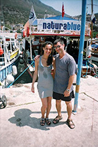Now Kas is a nice little seaside town with the usual Lykian tombs in the oddest places—in a restaurant’s backyard, on the side of the road, cut into the rock cliffs rising behind the town (we got some night pictures of these).