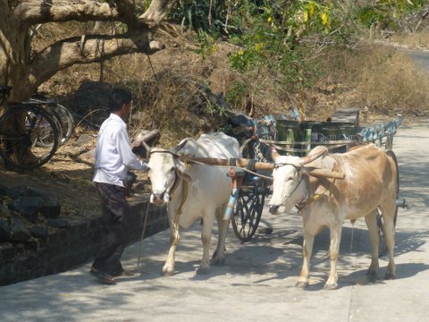 When Barbara says she wants to go to India, the first thing I say is, “I’m not driving in that cockamamie country.” When it comes to driving in other countries, mine is a checkered history. I still don’t know what the traffic signs mean in France and Italy, and I’ve got a stack of unpaid tickets to prove it. In England, at least, I can ask what the circle with the slash means, but you have to drive on the left. And the roundabouts! Even in the States, roundabouts baffle me—what’s wrong with a four-way stop?—and in England, you’re not only trying to pass someone while racing around a circle but doing it on the left as well. As part of the Raj’s dubious legacy, drivers in India have to deal with all these issues as well as one more aspect of Indian traffic I’ll mention below. (Hint: This one has four legs and moos.)